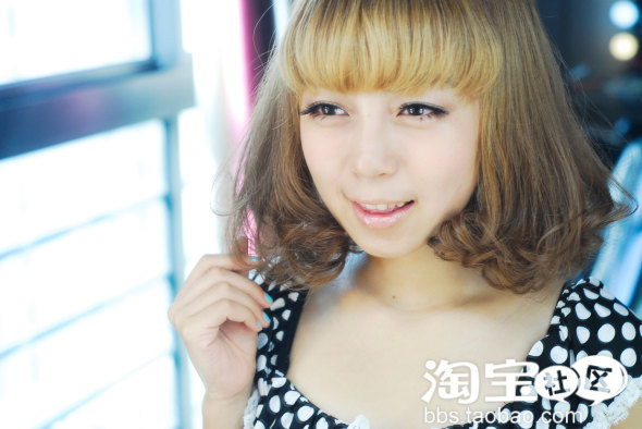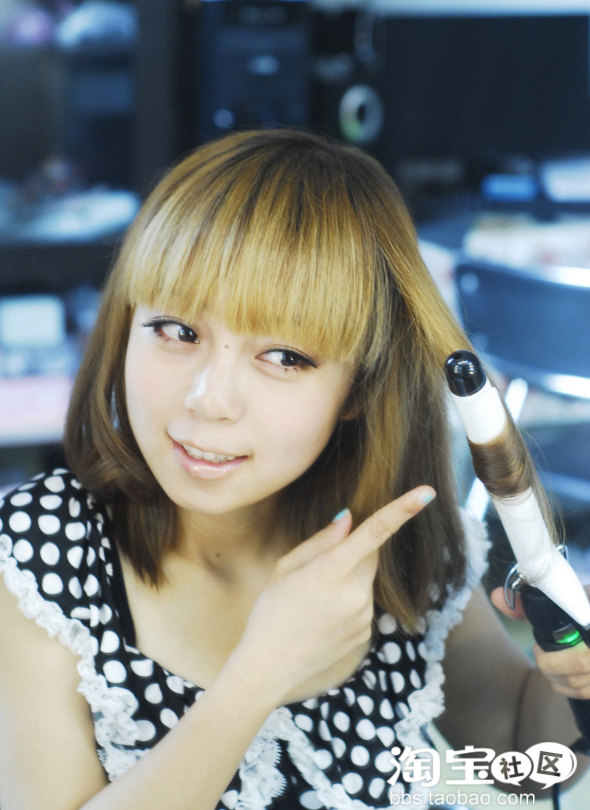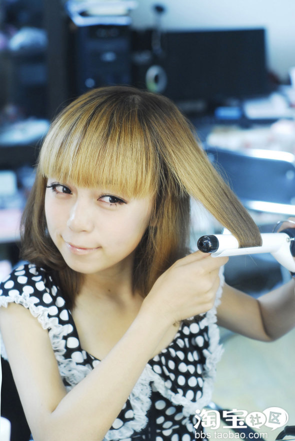 再把刘海也一并卷起来。。。。就更可爱了。。。(也可以用吹风机吹吹就好。。因为我最近喜欢刘海卷卷的感觉。狠复古,狠可耐……