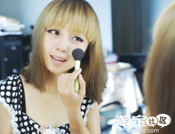 因为拍照的关系。。腮红没有现场深。。。不过切记平时出门的话。。就是淡淡的就好。。感觉像皮肤里面透出来一样。。。