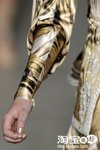 若是黑色的衣服上有金色的装饰物,金色指甲应该还可以配,白色衣服配起来的效果会更好些。