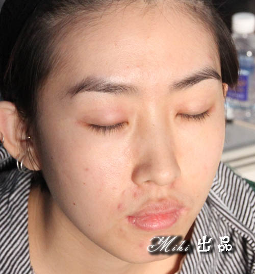嗡现在的皮肤基本上没有太大问题,只不过可能最近天冷吃辣的比较多,嘴巴周围长了好多痘痘,不过不是很严重。所以这次帮她设计的底妆,不想打太厚。太厚的底妆容易掩盖皮肤的质感,看起来显得妆比较浓重。所以打一层粉底液就可以了。