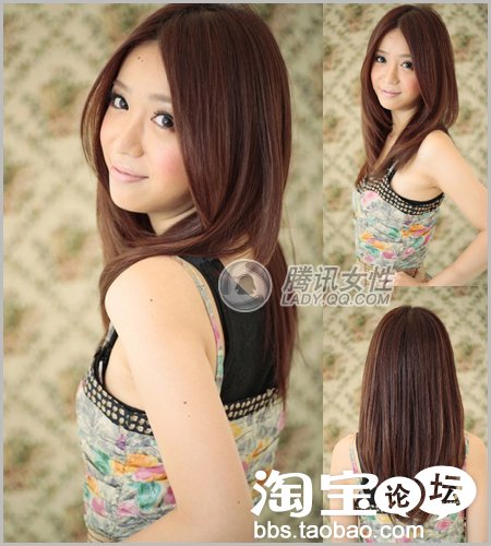 看多了侧分,偶尔尝试下中分造型也很棒。栗红色的发色很适合纤瘦的女孩,同时也不会使头发看起来那么的干枯,发尾的圆润渐渐缩小的结尾,感觉很舒服,中分的刘海很自然的垂坠同时和长发交融在一起并向内扣,淑女就是这么养成。