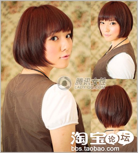 发量少的MM在选择发型时可以参考此图模特的发型,尽量选择短发,因为长发更会显得发量的稀松,在发中处,处理出圆润的效果,可以将头发的厚度显示出来,服帖的发梢和刘海会彰显你的甜蜜和可爱。