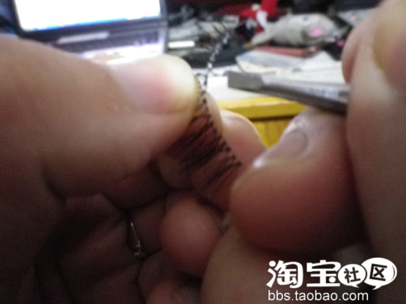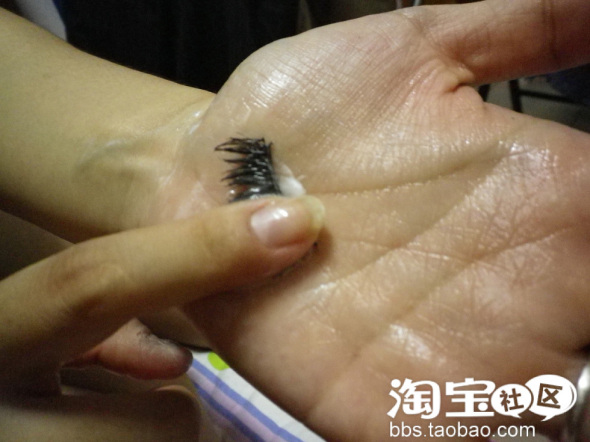 其实搓搓的过程中大家就会发现,黏在假睫毛上的胶已经慢慢开了。。