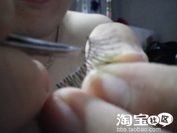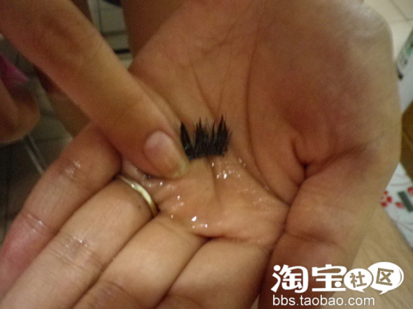 相机能力有限。其实擦干后的假睫毛,胶水和睫毛梗已成半分离状态,非常明显的。