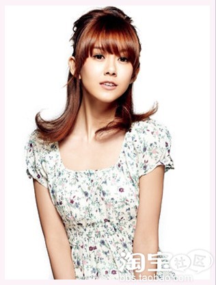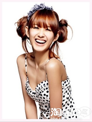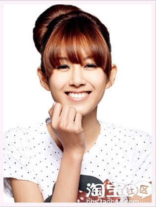 用扎公主头的手法将发结固定在侧面,将扎起的头发绾成球形发髻后,再戴上今夏最流行的牛仔蝴蝶结发饰,同时将刘海梳向与发髻相反的方向,新鲜潮流感便出来啦。
