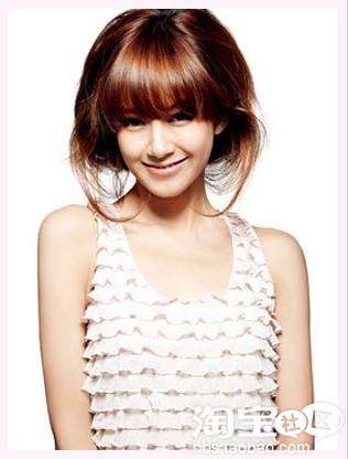 这是生活中最常用的发型,用发卷或电棒将发尾朝不同的方向卷,就能营造出最自然的效果发型,特别适合这样的焦糖发色。