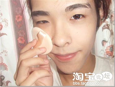用粉扑 晕开 顺着汗毛 往下 千万不要在那鬼画图