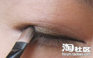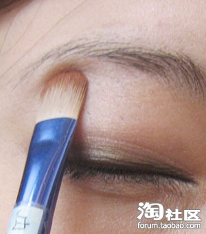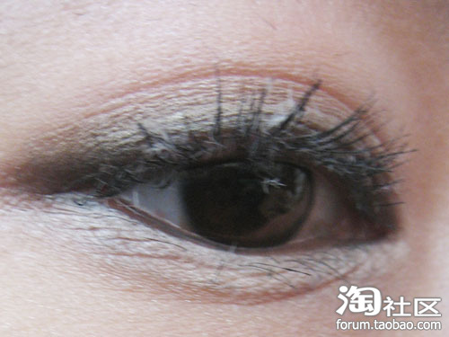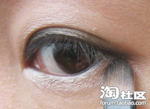 从图片可以看出来我上色的是咖啡色的 冬天上咖啡色看起来比较暖暖的!在眼尾与眼头需重复上色为了拉长眼部的线条。我在上色的时候是从眼根部向上推开,现在已经看到完全跟眼线融合了,而且过度的很自然哦!