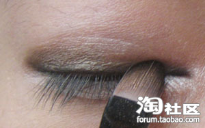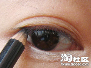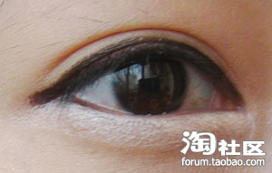 然后在接近睫毛根部涂抹,从图片可以看到我涂摸的眼线挺粗的而且也不是很细致,这个没有关系因为我用它是过度,眼影用的。呵呵!
