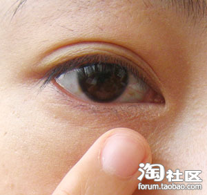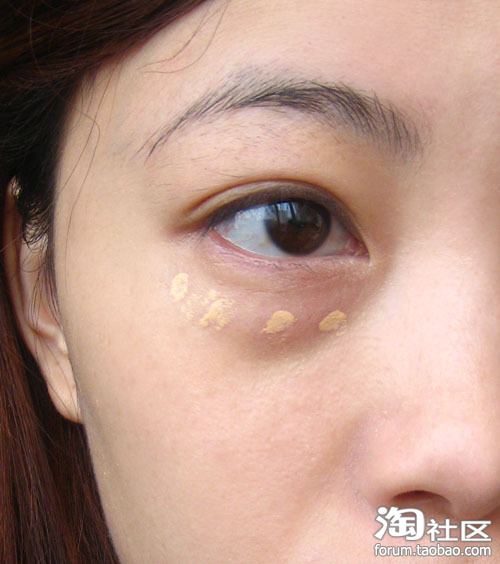 然后我们用眼部遮瑕霜在涂于眼袋上,