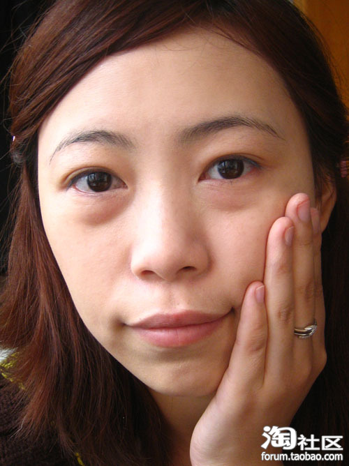 最后特地发了张超大的照片这样子可以让MM 看到我化妆后真实的效果,本身就有眼袋的MM可以不用在烦恼了,可以通过化妆眼袋就不会明显了哦!而且这张照片很清楚可以看到粉底看起来很轻薄哦!没有厚重的感觉!这个就是我想要的效果,不知道给亲们有没有帮助呢!呵呵!大家要多多交流!