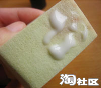 所以一定要用海绵在海绵上要放上乳液
