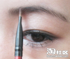 最后用白色在眉毛下方用白色打高光提亮,为了增加眼部的立体感!