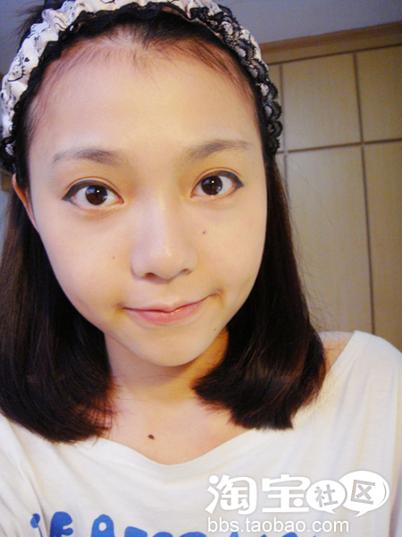 TT是有点上挑的眼角 为了营造水嫩的感觉 在眼角的位置要下压~有点像三角眼的