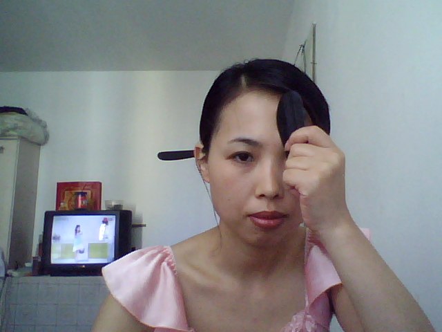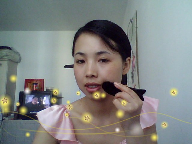 从下颌刮至听会穴,另一支手从下颌舒缓到听会 。因为小丽是自拍的