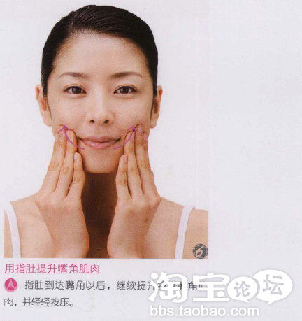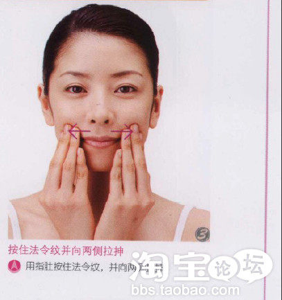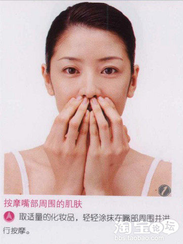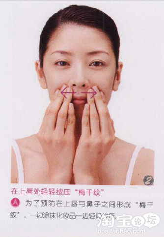 对于法令纹部位,要一边进行按压,一边涂化妆品。当然,做这些部位的肌肤护理时的化妆品用量,按照说明书所示,即“米粒大小”就可以了。