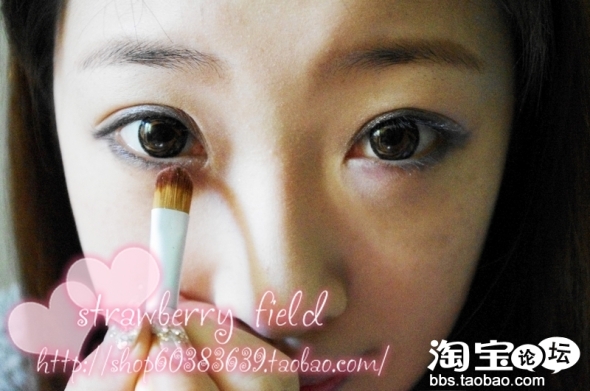 用浅棕色加重眼尾及眼线位置。打造层次感