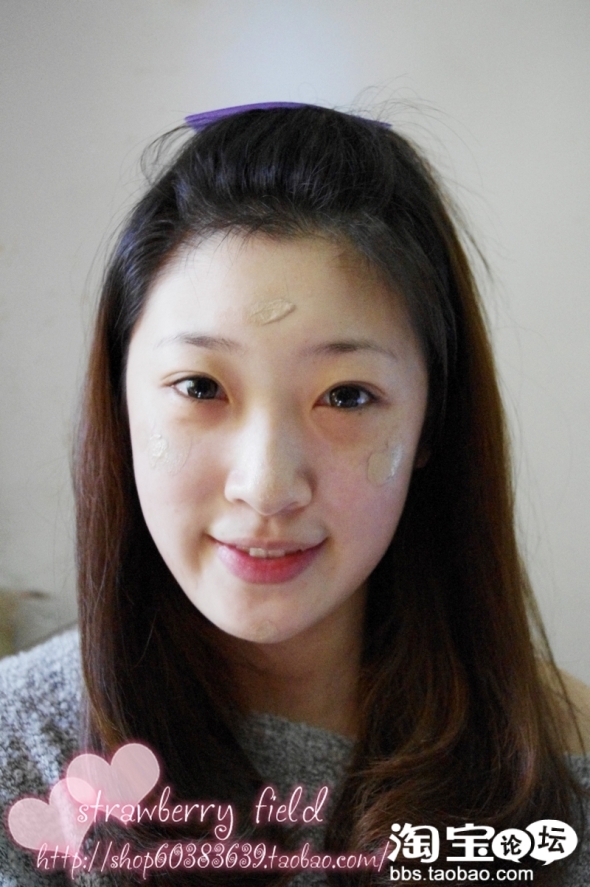 在黑眼圈以及有雀斑的位置轻点,然后涂匀