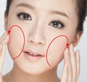 (2)用双手的中指和无名指如图按摩面颊的两边,重复10次到20次。