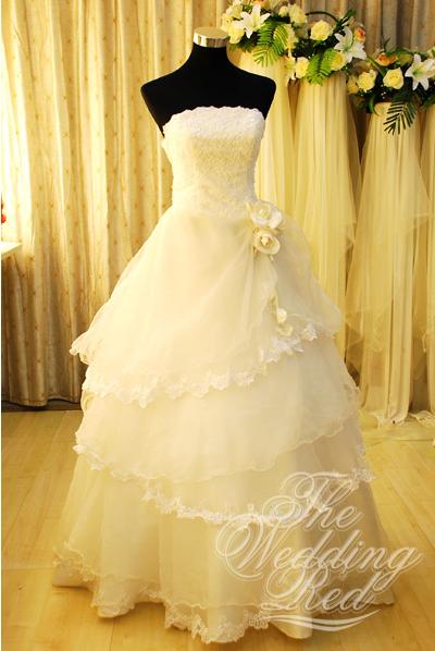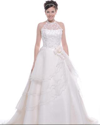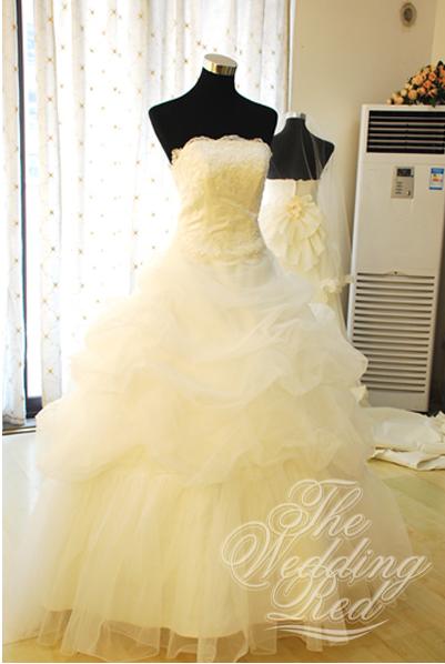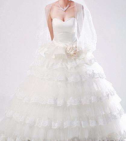 尽量以蓬裙款式为主来遮掩,千万不要挑鱼尾裙般设计线条的款式。
