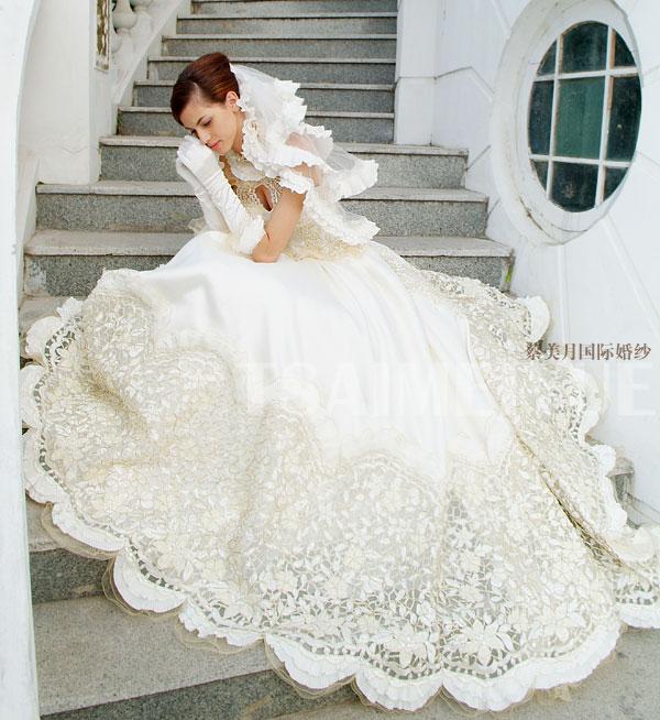 而在晚宴的正场,结合场地的允许,大多新娘会选择有拖尾的婚纱,以显示隆重和高贵的气质!选择质量较好的进口欧根纱或者光泽度好的缎面质地,更能显出优雅和高贵!