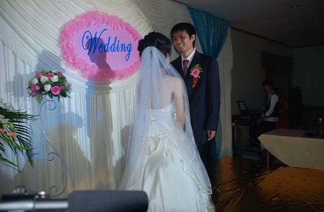 有时候网络带给我们的。不仅是份精神的寄托,还有可能带来意外的惊喜。最后补几张我们婚礼当天的照片。