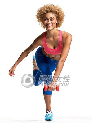 左手向上抬升,持一哑铃,双脚分开,与肩同宽,左腿向后提送。放松~~转换方向,抬升右脚,可以很好的锻炼你的平衡力。