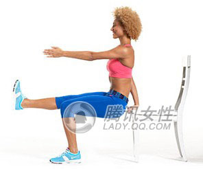 保持此动作1.3分钟,回到之前身体靠椅子的坐立姿势。