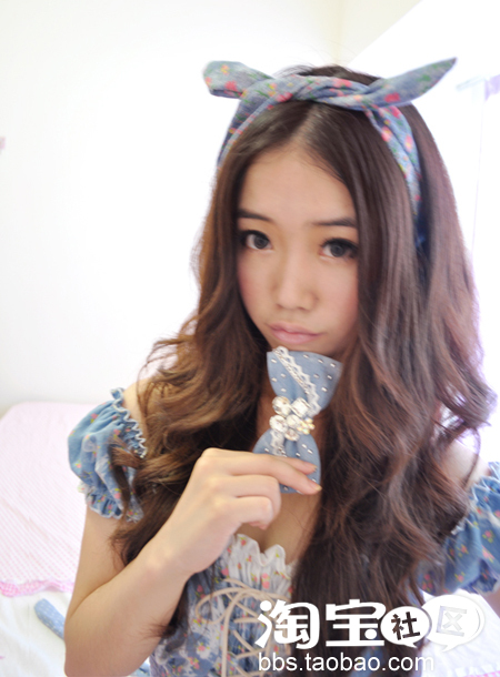 今天选择的是牛仔布软钢丝兔耳发带,也是今年超流行的发饰哦!