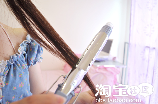 卷发棒夹住发尾往里卷。卷两圈半,时间12秒左右。