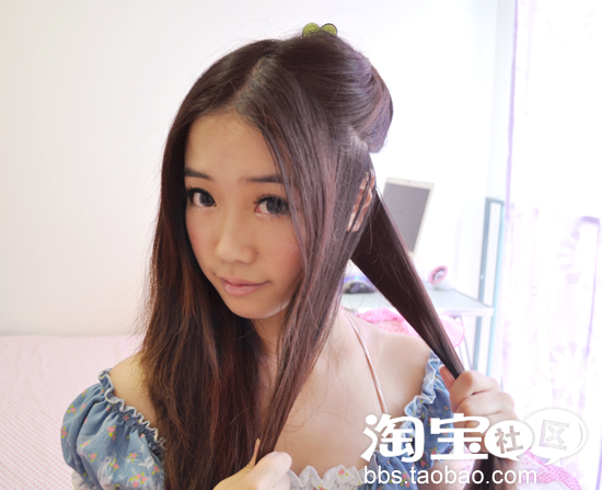 2、上面的头发放下来,分下面的一半出来,上面的夹上去。
