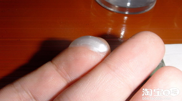 流动性一般 上面还有些许的小气泡.颜色呈珠光白.没有什么气味.