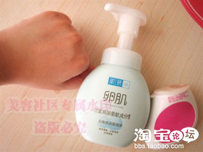 首先,要打出丰富丰富丰富丰富的泡沫,泡泡很关键哦,可以帮助我们更好的清洁毛孔而且不容易拉扯到皮肤,我试过打泡网,效果不错,但是湿漉漉的放着总觉得不太卫生,如果你是和我一样的懒MM的话,还是用手打泡吧(注意手要洗干净哦~),或者直接选购洁面慕斯!要用流动的水洗脸,要用手哦,不建议用洗脸扑或其他…… 洁面完毕后,用纸巾吸至八分干(千万不要用毛巾擦脸,大忌啊!