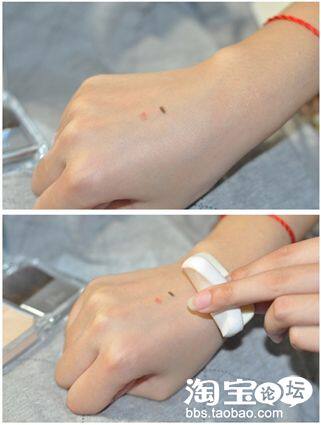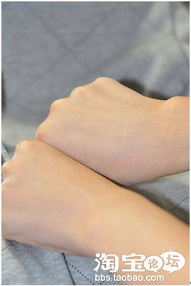 来看看单上一层粉粉的效果吧,上面的那个手明显要白皙一些,然后肤色比较均匀,而且很有光泽哦,但是又没有什么上过粉的感觉!