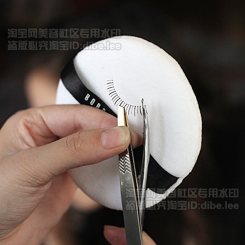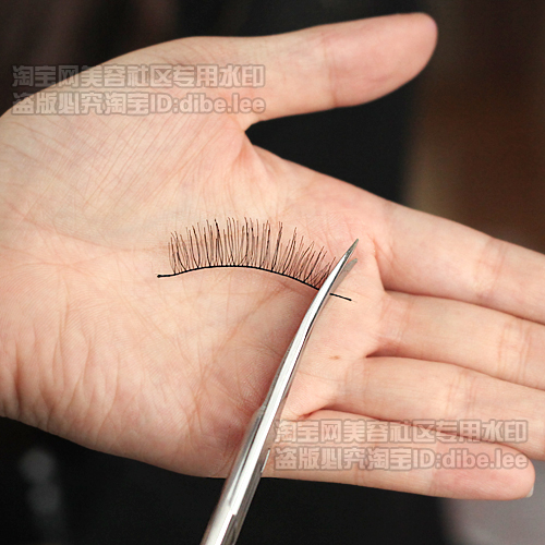 修剪下睫毛,同样也是先贴中间,再贴眼尾最后贴眼头.