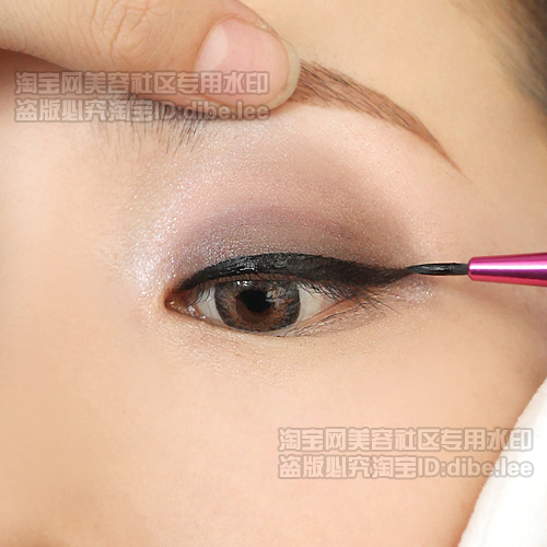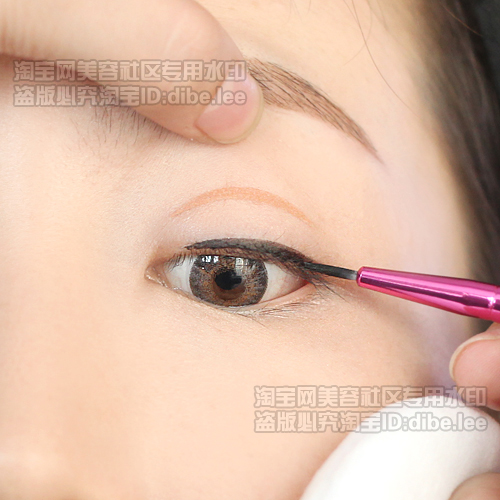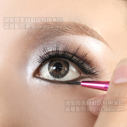 画下眼线.整个内眼线都要涂.眼睛小的MM可以只画三分之二的眼线.
