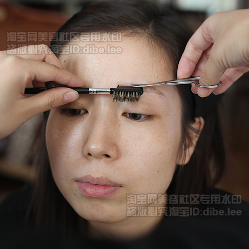 眉形修好以后,用辅助工具修剪眉毛,让眉毛更有型.