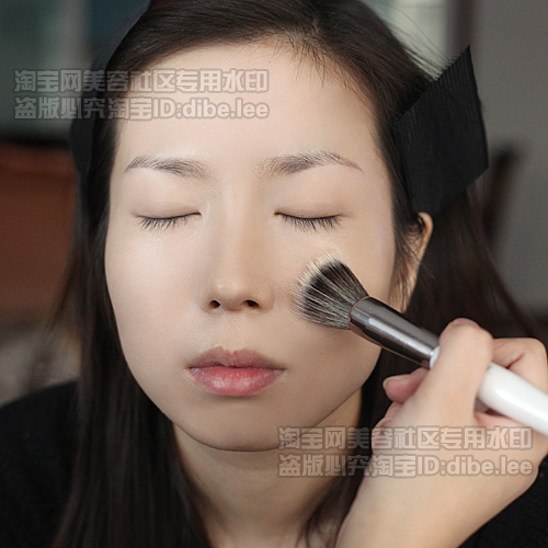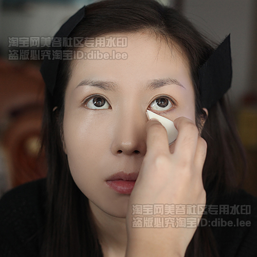 使用三角海绵沾取,适量粉底液做一些细节上的修整.