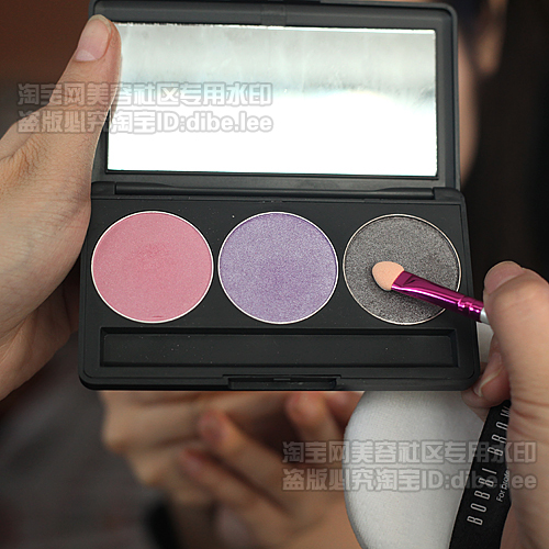 选择芭比色系眼影.用眼影刷沾取粉色打底.