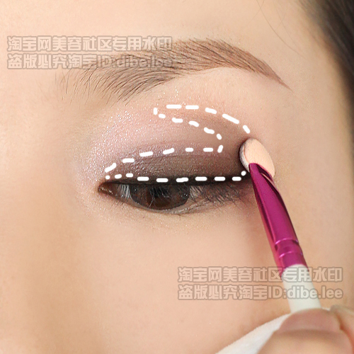 把深色涂在虚线区内.再用眼影棒晕染眼线.