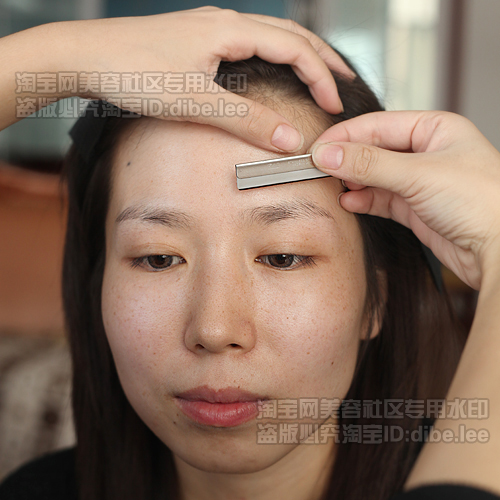 先用刀片修好眉形,今天的芭比妆,我们要修一个标准眉形.要注意眉毛的粗细!