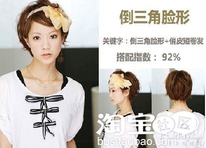 [倒三角形臉型] 在梳理時要注意揚長避短,便可達到整潔、美觀、大方的效果。適合選擇側分頭縫的不對稱發式,露出飽滿的前額,發梢處可略微粗亂一些,這樣能將年輕女性純情、甜美、可愛等特點直率地表現出來。