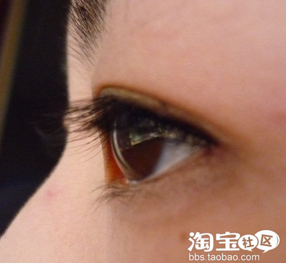 把假睫毛剪成成几段,取眼尾的两段依次粘在内眼线上,加强下眼尾,就很漂亮啦。如下图