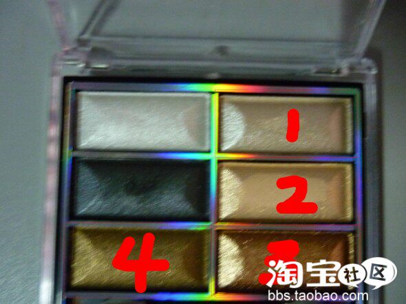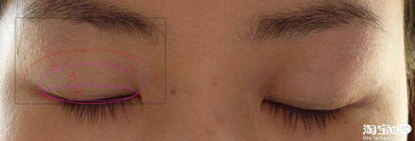 眼影由大到小依次涂上1-2-3-4.4号沿着睫毛根部细细的晕染,不要下手太重。