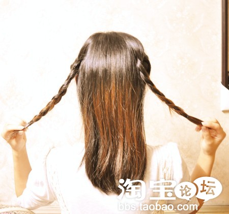 注意~~固定发尾的时候要将发尾隐藏在另一个麻花的下面,这样就避免露出发梢的尴尬哦~~