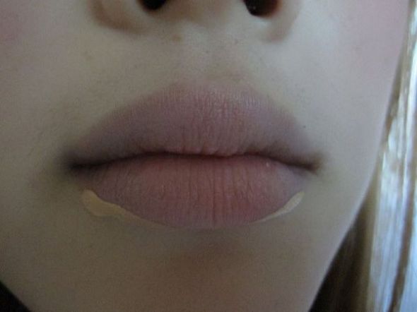 唇色比较暗 所以在下唇线部分做了小小的遮瑕 嘴巴小一点不是很可爱木