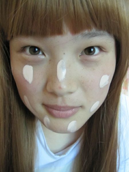选择比较湿润的粉底液,平均涂抹在清洁后的皮肤上。