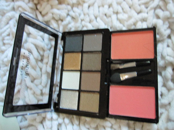我用的是眼影和腮红盘 携带方便 颜色也比较齐全