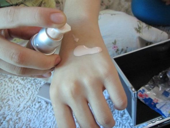 首先是修饰肤色的动作 本来准备挤到虎口 我这一兴奋一哆嗦到手背了