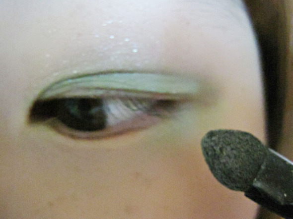 在眼睛下面点开 然后慢慢的拍擦晕开
